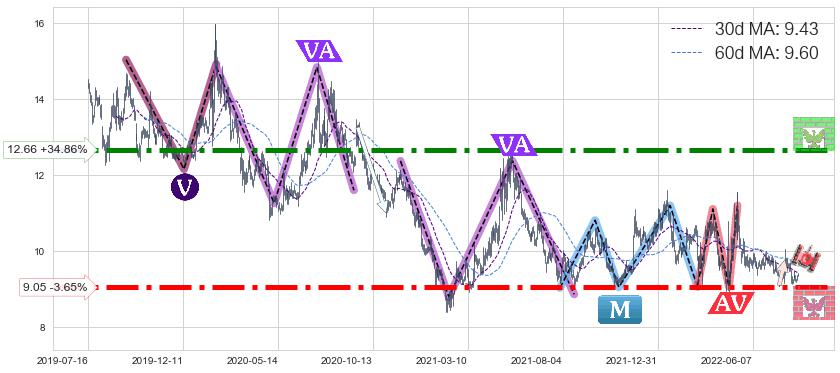 ♘ 支撑价格位9.05,可信任强度97.88%,距离最后交易2022-08-12形成的收盘价格9.39相差 -3.65%