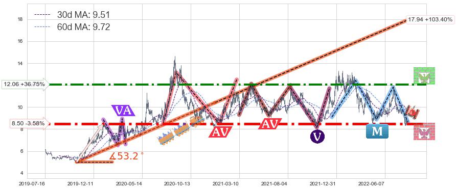 ♘ 阻力价格位12.06,可信任强度79.99%,距离最后交易2022-08-12形成的收盘价格8.82相差 +36.75%