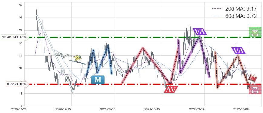 ➣ 【已确认突破】最后价格:8.82与最小【整理】第一目标价格→(2022-09-16: 4.76 )相较: 下跌空间【较大】