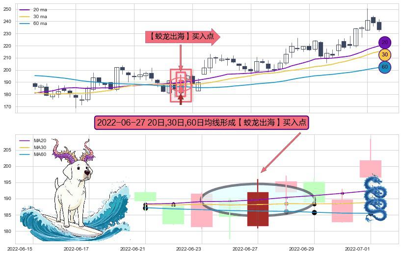⚀ 2022-06-27日显现 20日-30日-60日均线 【蛟龙出海】买入点 看多信号,后市看涨,买入