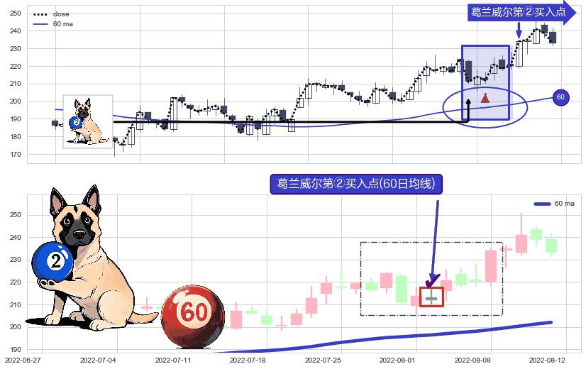 ⚀ 2022-08-02-日显现 葛兰威尔均线 60日均线 第②买入点 上升趋势的中继信号,后市看涨,买进信号