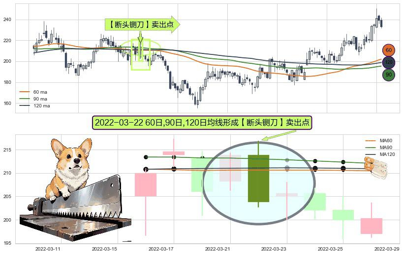 ⚀ 2022-03-22日显现 60日-90日-120日均线 【断头铡刀】卖出点 看空信号,后市看跌,卖出