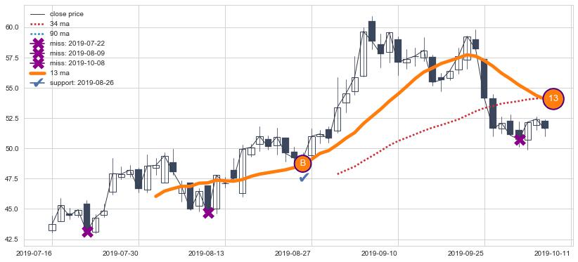 ⚄ 短期均线MA8上穿中期均线MA13形成的交叉是标准 黄金交叉