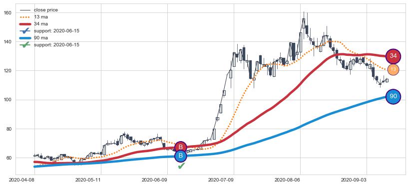 ⚄ 价格在均线获取支撑后已再次向上反弹了【较长】距离, 第②买入点 支撑效果得到【初步确认】