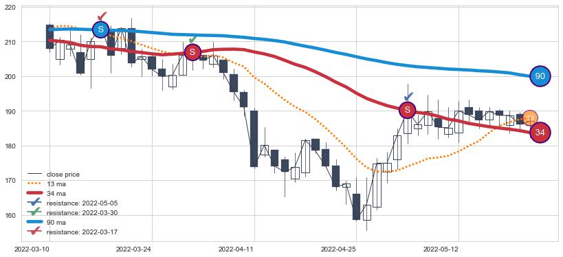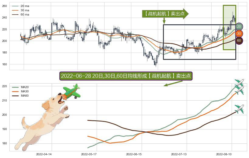 ⚀ 2022-05-11日-2022-08-12日显现 20日-30日-60日均线 【战机起航】卖出点 看空信号,后市看跌,卖出