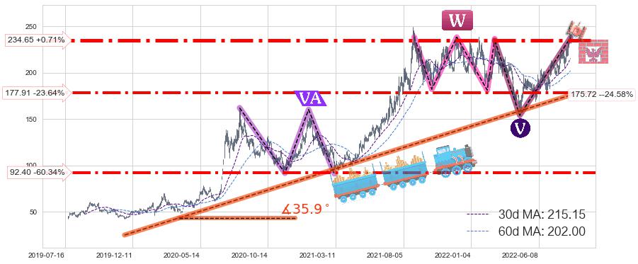 ♘ 支撑价格位177.91,可信任强度83.01%,距离最后交易2022-08-12形成的收盘价格232.99相差 -23.64%