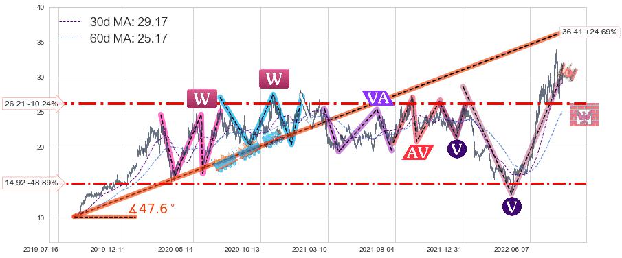 ➢ 2022-06-28到达第❸价格目标位置28.36