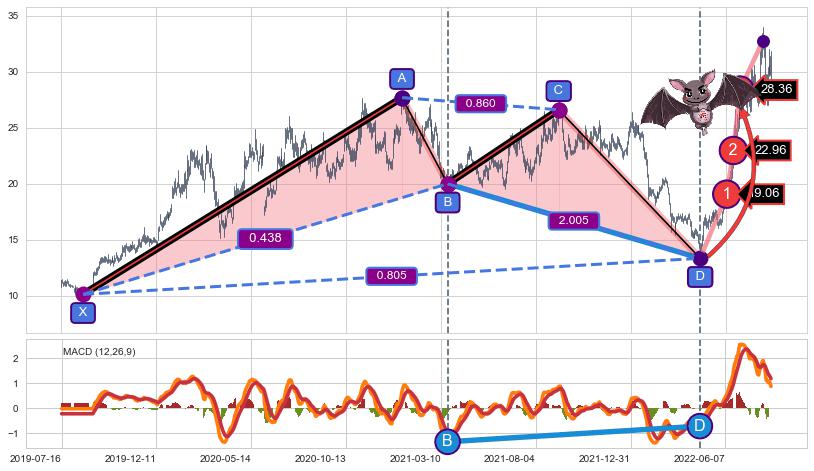 ➣ 已完成【蝙蝠】形态起点X: 2019-08-16, 终点D: 2022-04-25, 共651交易日