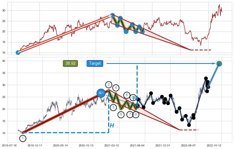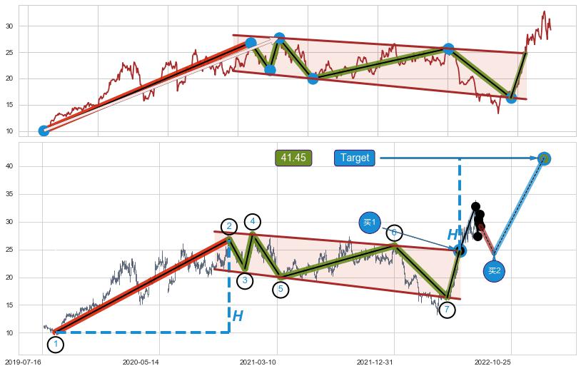 ➣ 最小中继整理涨幅→𝐇: 16.69 (𝐇旗杆的长度:旗杆起点→顶点)