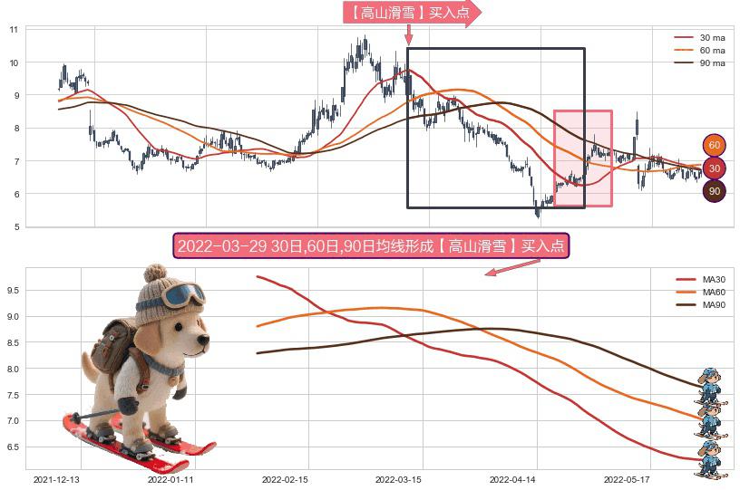 形态多维评估: ⚀ 2022-01-26日-2022-05-30日显现 30日-60日-90日均线 【高山滑雪】买入点 看多信号,后市看涨,买入