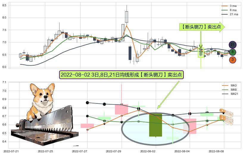 形态多维评估: ⚀ 2022-08-02日显现 3日-8日-21日均线 【断头铡刀】卖出点 看空信号,后市看跌,卖出