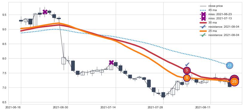 下跌趋势2021-06-16-2021-08-17,均线25, 30确认关键阻力1处