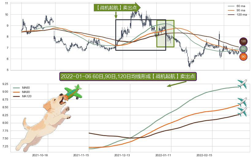 形态多维评估: ⚀ 2021-11-15日-2022-03-04日显现 60日-90日-120日均线 【战机起航】卖出点 看空信号,后市看跌,卖出