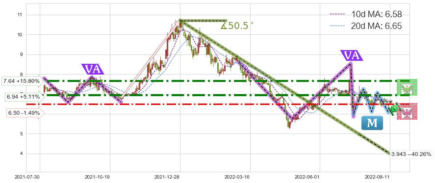 ♘ 阻力价格位6.94,可信任强度79.87%,距离最后交易2022-08-12形成的收盘价格6.60相差 +5.11%