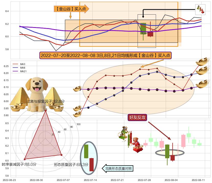 ♘ 支撑价格位6.16,可信任强度52.69%,距离最后交易2022-08-12形成的收盘价格6.29相差 -1.99%
