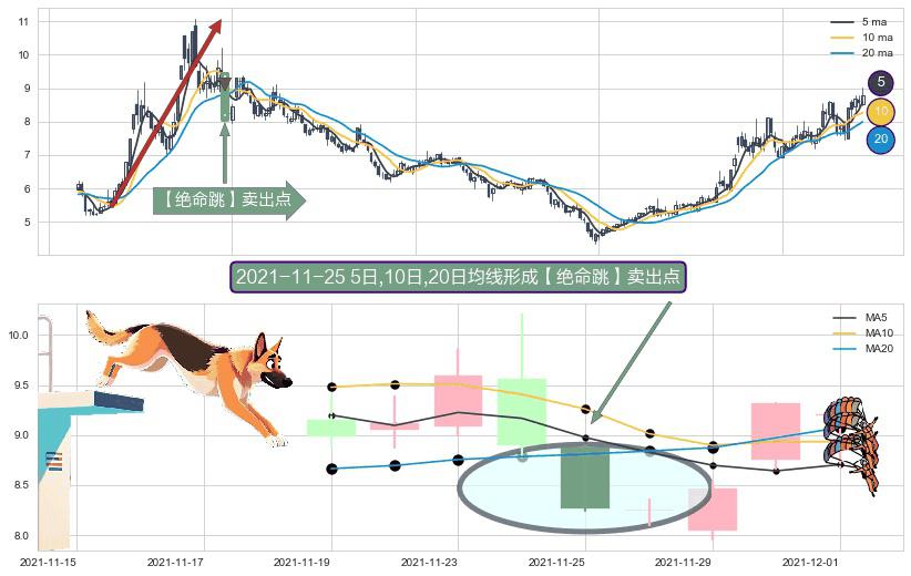 ⚀ 2021-11-25日显现 5日-10日-20日均线 【绝命跳】卖出点 看空信号,后市看跌,卖出