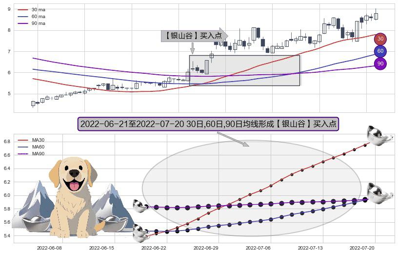 ⚀ 2022-06-22-日至2022-07-20-日显现 30日-60日-90日均线 【银山谷】买入点 看多信号,后市看涨,买入