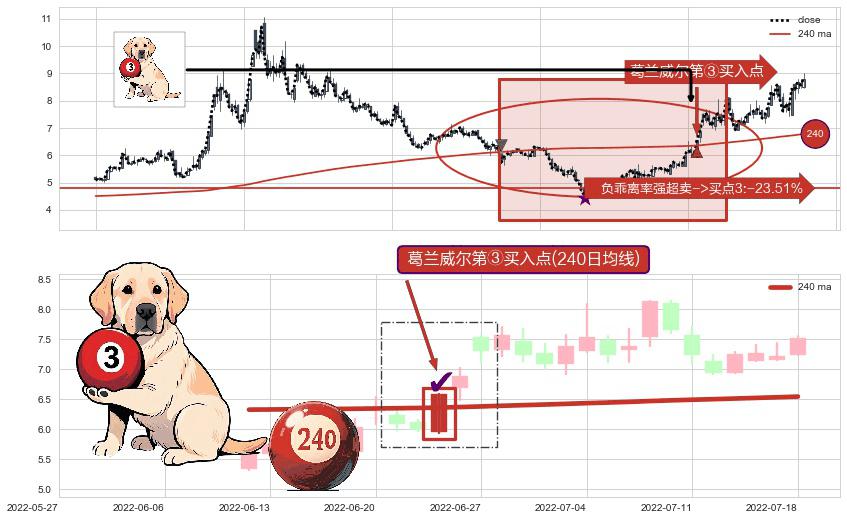 ⚀ 2022-06-23-日显现 葛兰威尔均线 240日均线 第③买入点 上升趋势的中继信号,后市看涨,买进信号