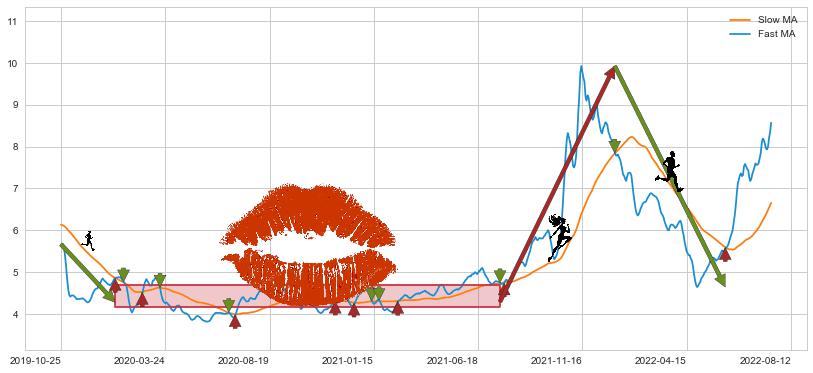 2021-12-29至2022-06-13 慢线与快线呈空头排列, 慢线与快线接触少,无缠绕