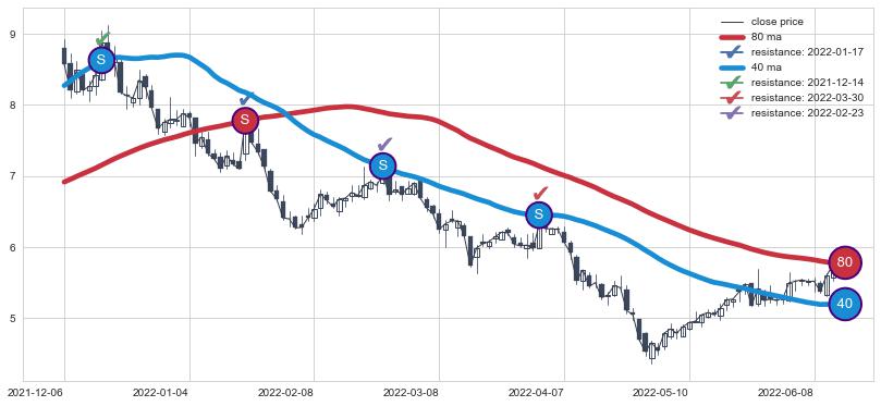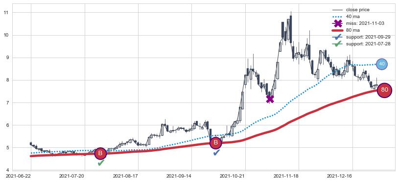⚂ 2022-03-15-日均线向下破位,2022-06-23-日重新上穿突破均线,均线支撑再次生效