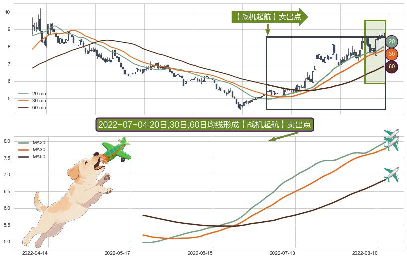 ⚀ 2022-05-20日-2022-08-12日显现 20日-30日-60日均线 【战机起航】卖出点 看空信号,后市看跌,卖出