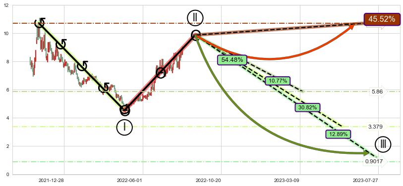 ➣ c.1: 当前c浪回调位置(2022-08-12, 8.80),仍然有回调空间