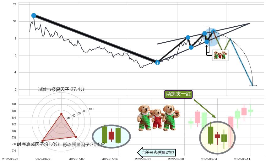 ♘ 支撑价格位6.94,可信任强度85.88%,距离最后交易2022-08-12形成的收盘价格8.80相差 -21.17%