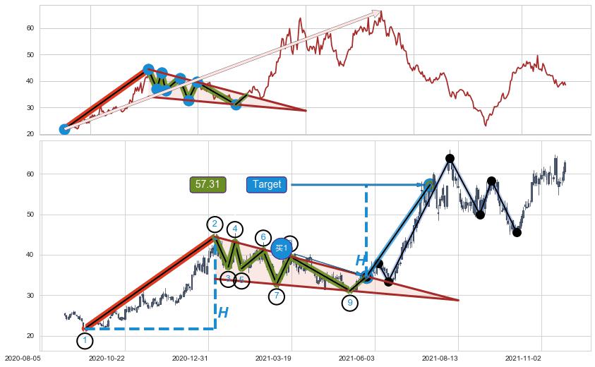 | 9 🅚:塔形底 | 圆底 ➕ 📡:谐波鲨鱼已到达d点:猜想c下行到达d点后报复性拉升上涨(均值回复) ☞ 看多信号 ⇥ 【🅚线】交织【图形】⇥ 综合量化分数: 55 | > |