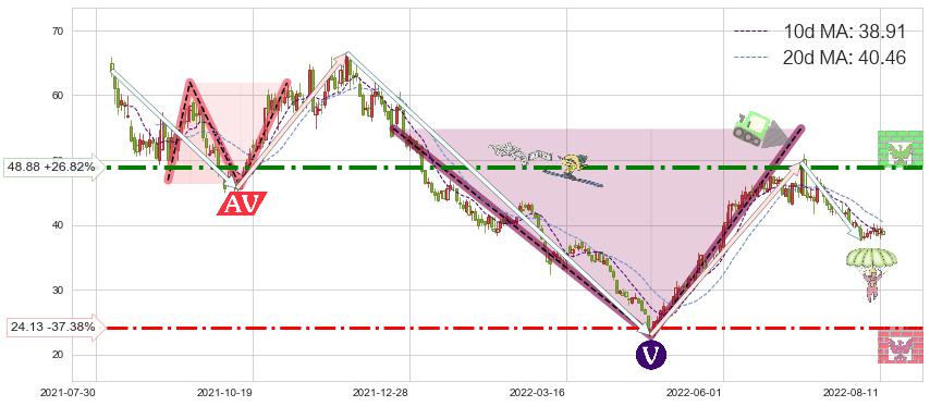 ♘ 阻力价格位48.88,可信任强度76.86%,距离最后交易2022-08-12形成的收盘价格38.54相差 +26.82%