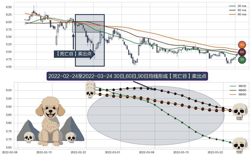 形态多维评估: ⚀ 2022-02-25-日至2022-03-24-日显现 30日-60日-90日均线 【死亡谷】卖出点 看空信号,后市看跌,卖出