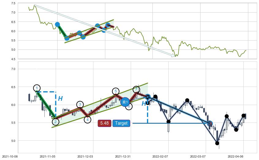 ➣ AI预测: 假定反转启动后, 第❶目标位置(2023-01-30, 5.53)