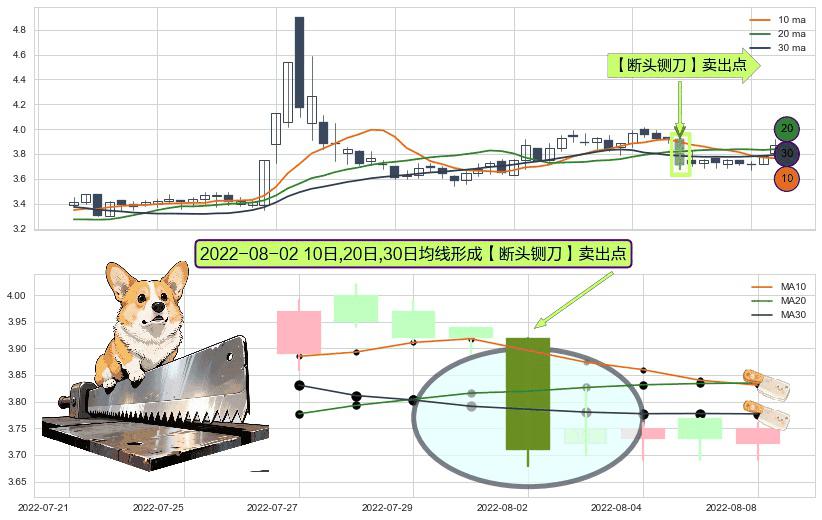 形态多维评估: ⚀ 2022-08-02日显现 10日-20日-30日均线 【断头铡刀】卖出点 看空信号,后市看跌,卖出