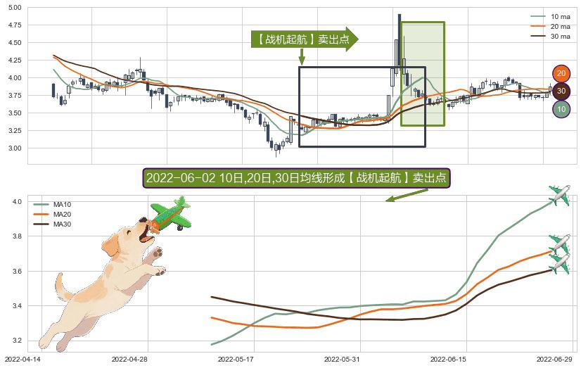 形态多维评估: ⚀ 2022-05-11日-2022-06-27日显现 10日-20日-30日均线 【战机起航】卖出点 看空信号,后市看跌,卖出