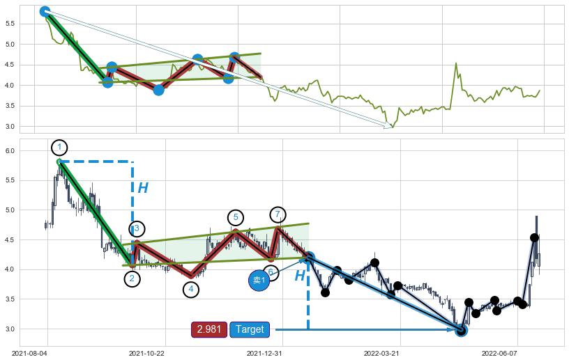 ➣ AI预测: 假定反转启动后, 第❶目标位置(2022-09-21, 3.917)