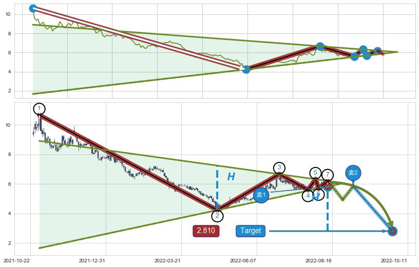 ➣ 【仅预测突破】最后价格:6.09与预测突破价格:5.82→【空间临近】后续最小【整理】第一目标价格→(2022-10-11: 2.810 )