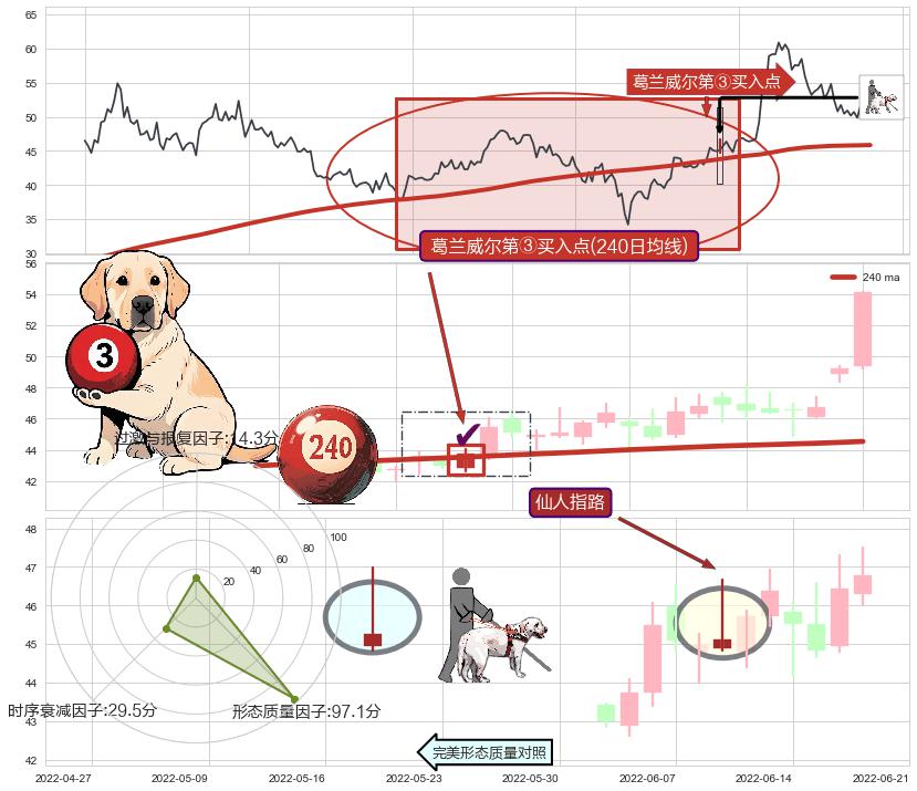 ➢ 【买1】: 激进型 买点 →(2022-06-06: 44.18 )形成突破降⚑旗形【整理】形态