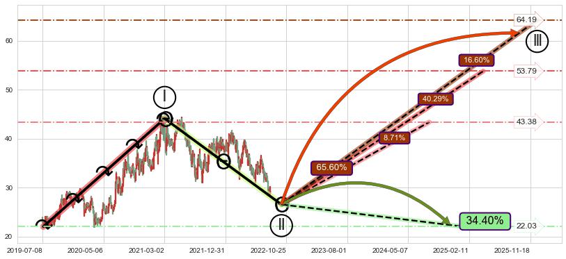 ➣ AI预测: 假定反转启动后, 第❸目标位置(2023-07-19, 44.09)