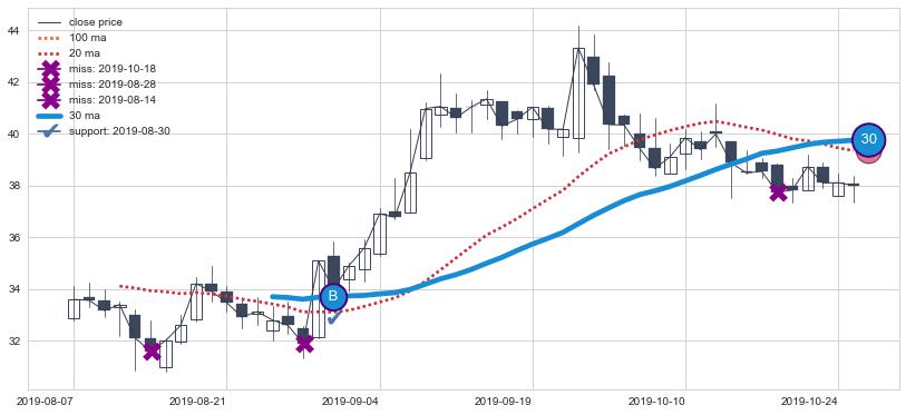 上涨趋势2019-08-07-2019-10-25,均线30确认关键支撑1处