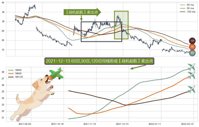 形态多维评估: ⚀ 2021-10-21日-2022-02-10日显现 60日-90日-120日均线 【战机起航】卖出点 看空信号,后市看跌,卖出