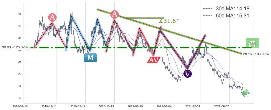 ♘ 阻力价格位30.93,可信任强度94.44%,距离最后交易2022-08-12形成的收盘价格13.87相差 +123.02%