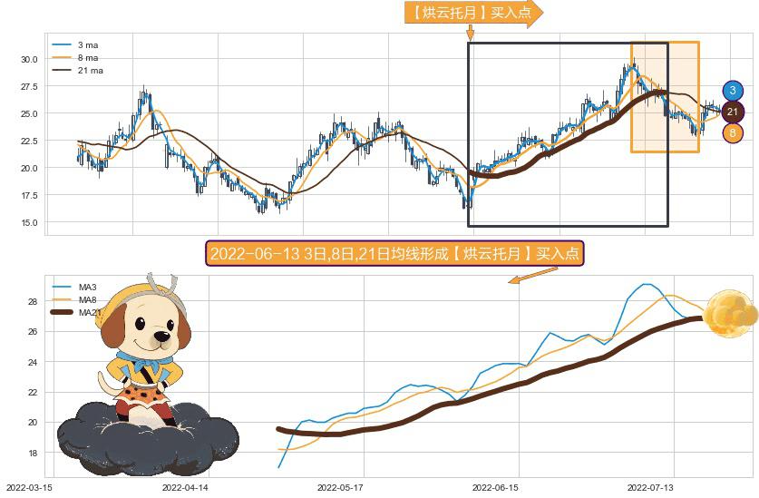 ⚀ 2022-04-27日-2022-07-21日显现 3日-8日-21日均线 【烘云托月】买入点 看多信号,后市看涨,买入