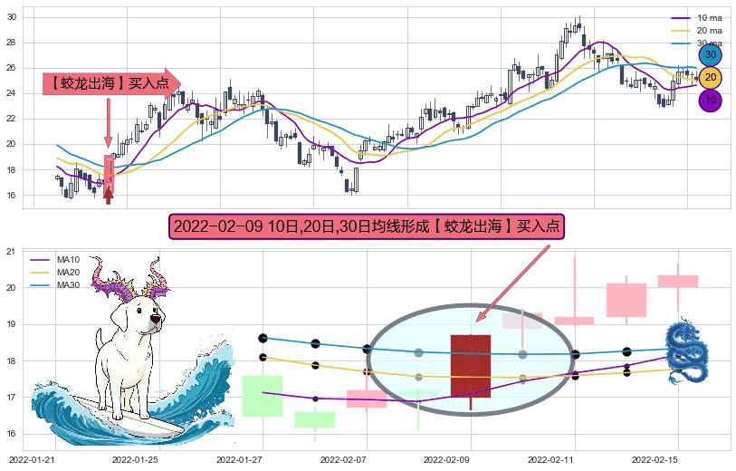 ⚀ 2022-02-09日显现 10日-20日-30日均线 【蛟龙出海】买入点 看多信号,后市看涨,买入