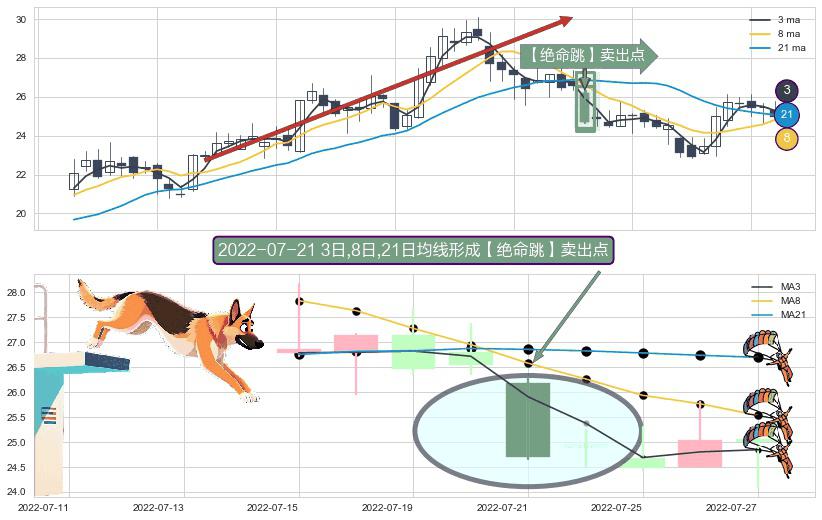 ⚀ 2022-07-21日显现 3日-8日-21日均线 【绝命跳】卖出点 看空信号,后市看跌,卖出