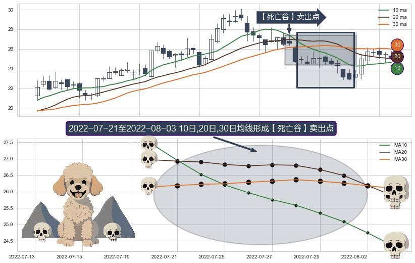 ⚀ 2022-07-22-日至2022-08-03-日显现 10日-20日-30日均线 【死亡谷】卖出点 看空信号,后市看跌,卖出