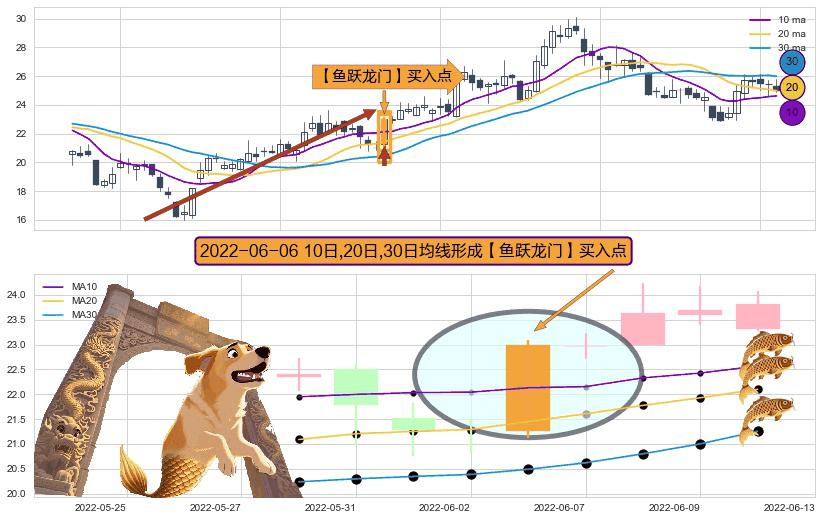 ⚀ 2022-06-06日显现 10日-20日-30日均线 【鱼跃龙门】买入点 看多信号,后市看涨,买入