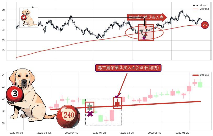 ⚀ 2022-04-28-日显现 葛兰威尔均线 240日均线 第③买入点 上升趋势的中继信号,后市看涨,买进信号