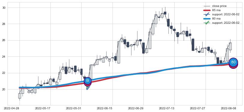 ⚂ 2022-04-21-日均线向下破位,2022-04-28-日重新上穿突破均线,均线支撑再次生效