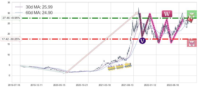 ♘ 阻力价格位27.46,可信任强度71.77%,距离最后交易2022-08-12形成的收盘价格24.98相差 +9.95%