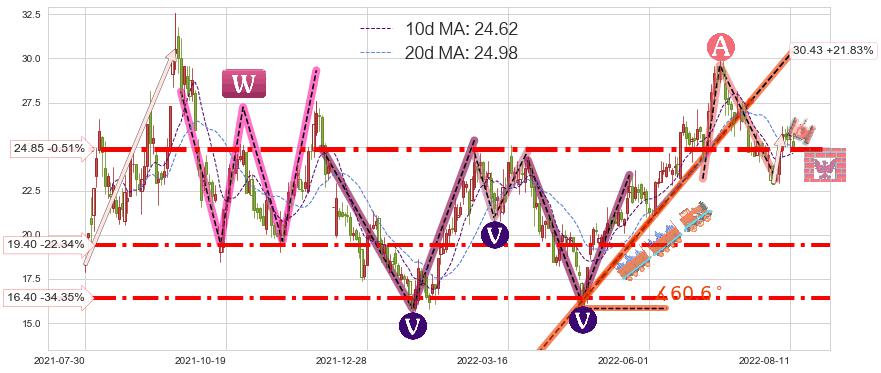 ➣ c.1: 当前c浪回调位置(2022-08-12, 24.98),仍然有回调空间