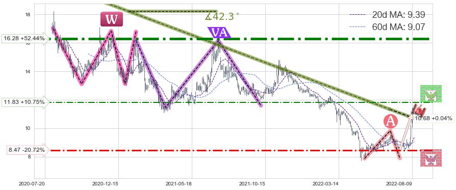 ♘ 支撑价格位8.47,可信任强度60.67%,距离最后交易2022-08-12形成的收盘价格10.68相差 -20.72%